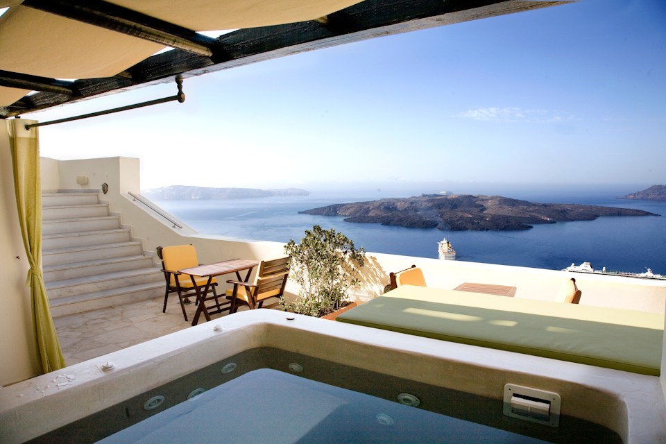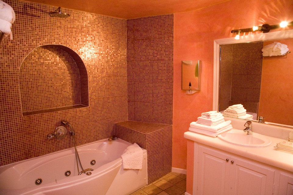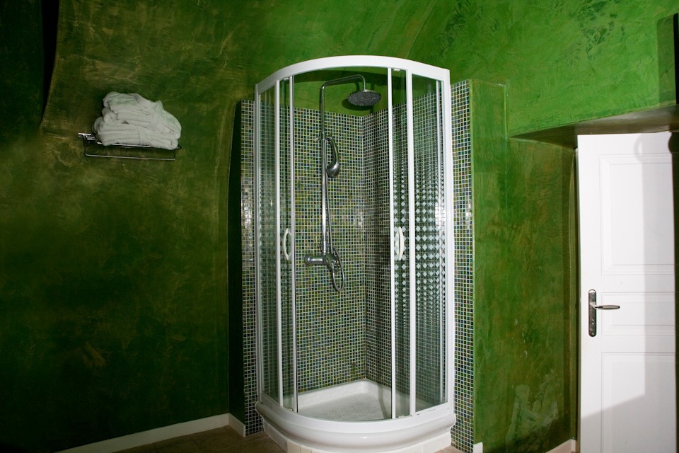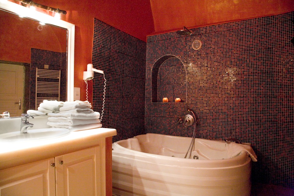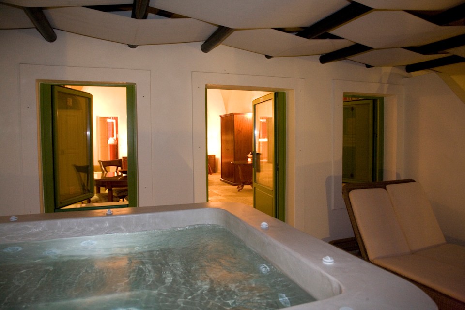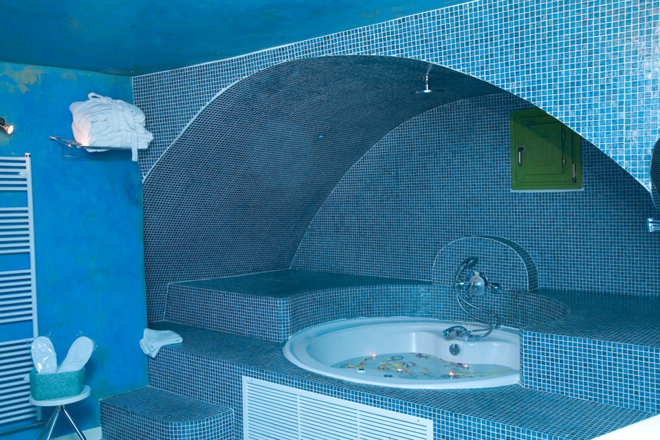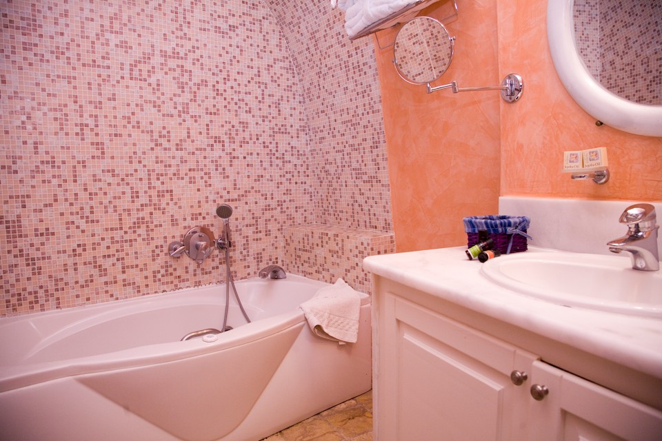 distinguished presentation of the bathroom, where the shaping of the area, along with its decoration and its unique Jacuzzi, provide an exceptional experience of relaxation and calmness, but also an atmosphere of mystery and romance.