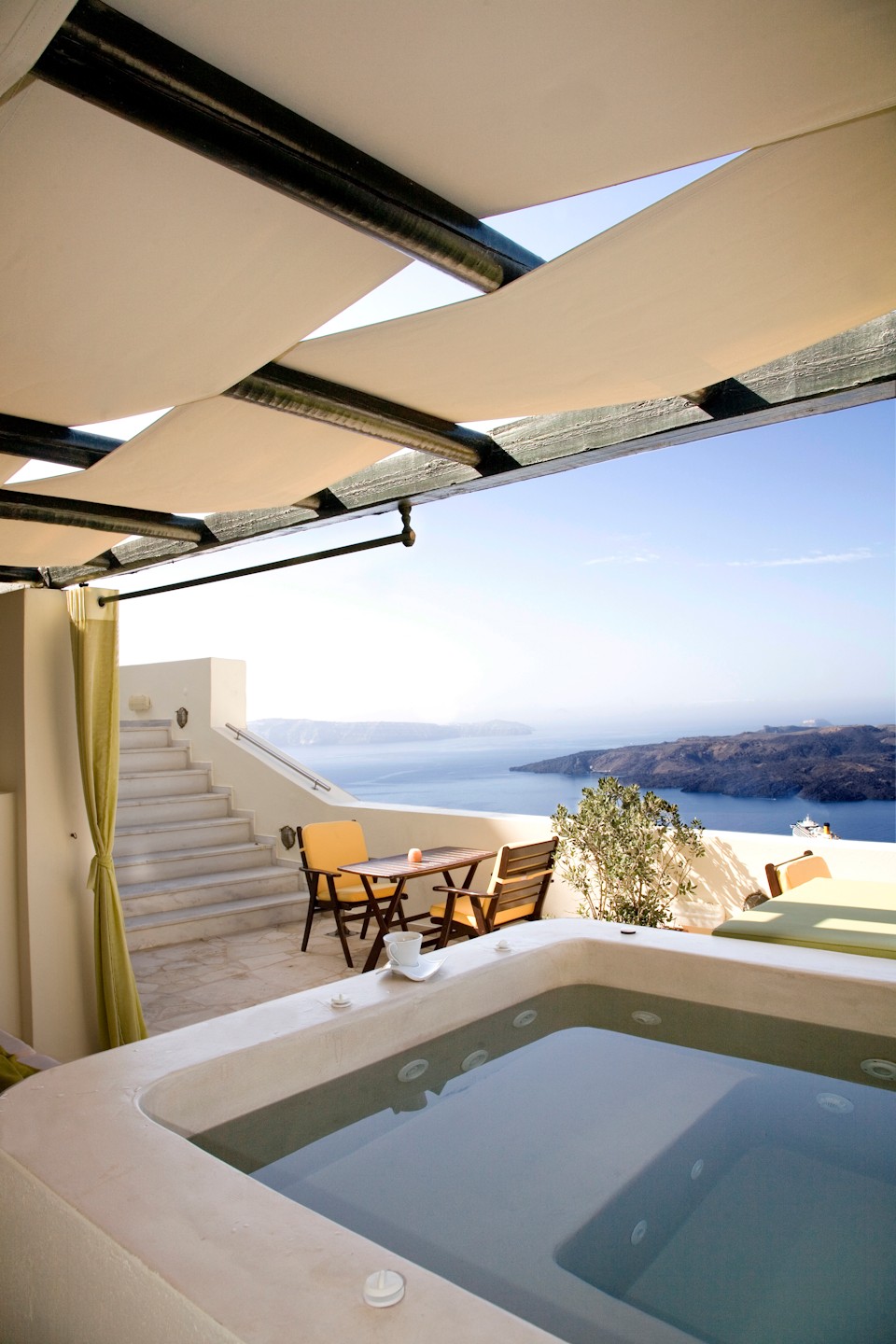 picturesque windows, from which one can admire the blue sky binding with the endless blue of the ocean.