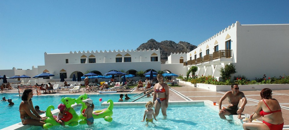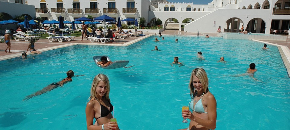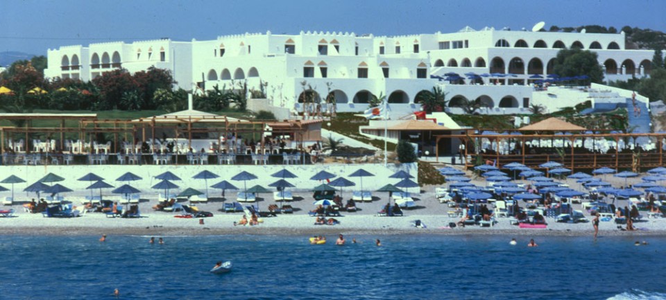 The Hotel is situated in Kolymbia area, on the sandy Beach of Kolymbia and close to the Kolymbia Center (Bars, Shops and Restaurants). The Bus stop to Rhodes Town and Lindos is located in front of the Hotel. The Hotel was built in the year 2000, it's a comfortable and spacious complex with a Garden, two swimming pools (one indoor and one outdoor), terrace with sun beds and umbrellas. There is a Beach Bar providing comfortable seating, right next to the beach (open until 24:00Hours) and an amphitheatre. The Hotel is fully air-conditioned from 01.07 - 15.09.05 modern Lobby and Reception, Internet (you pay on the Spot), Main bar, Pool bar, Minimarket, Restaurant with Terrace, Indoor Theatre. The hotel comprises of 158 Rooms, spread over three Floors. Greek Category: A.