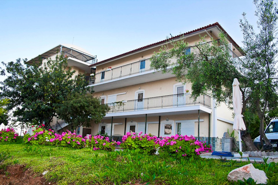 The building is located in a quiet position on a small hill not far from the center of the village and the shops offering a panoramic view to the surrounding islands of Tolo and the further island of Spetses. The distance to the beach is 150 m. Modern accommodation with impressive and qualitative furniture offering a luxurious atmosphere. Spacious balconies and verandas, garden with trees and flowers. Roof-terrace with small swimming pool for relaxing and romantic vacations! Laundry service free of charge for guests staying more than 7 nights.