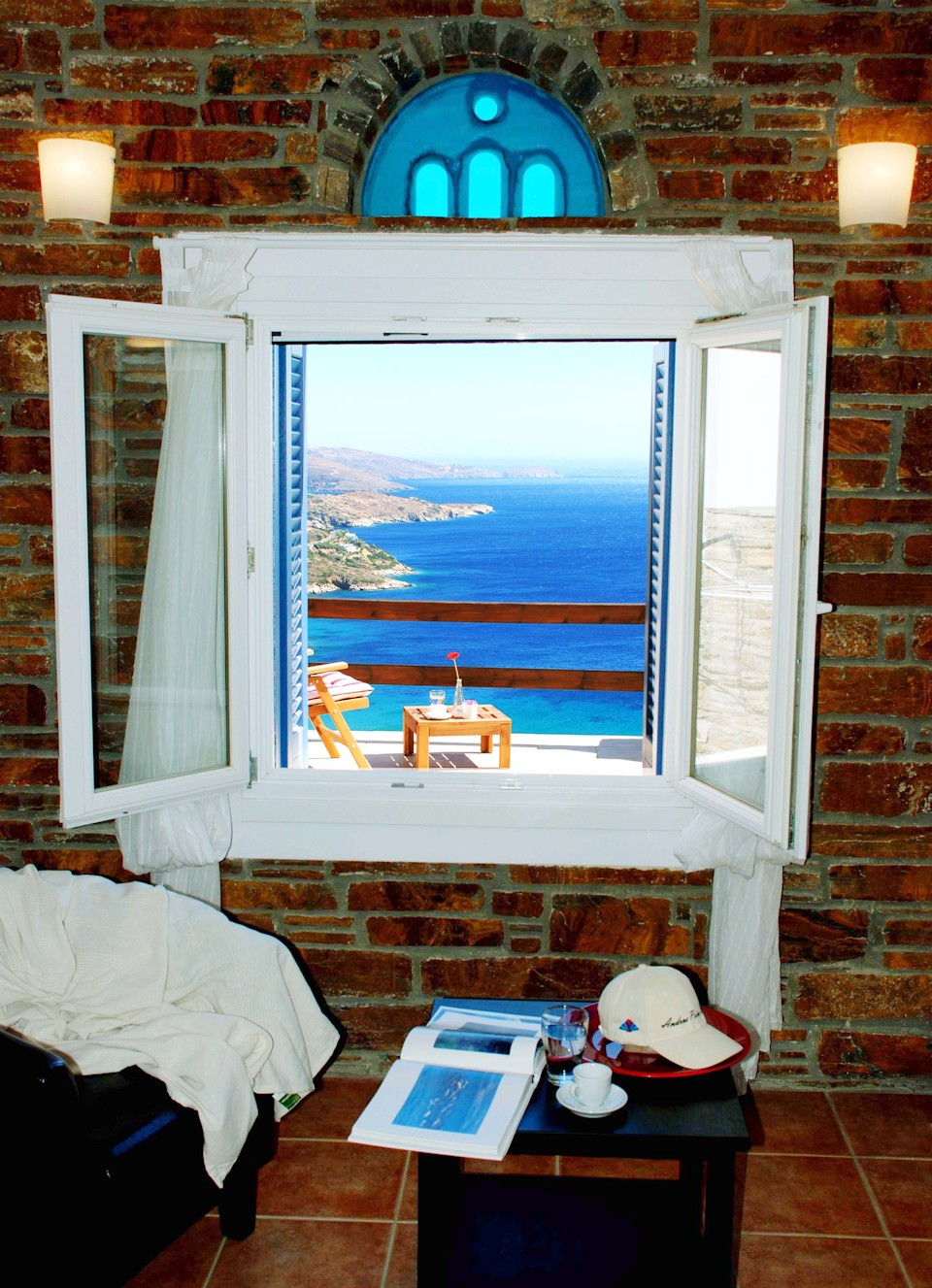 Andros Prive Suites are lying on a hill above Kypri village among the most famous island beaches, only a short drive from the main Andros sea port of Gavrio and from Batsi the island’s most well known picturesque touristic village.