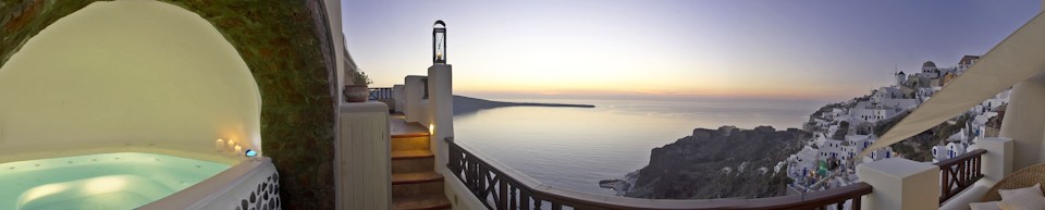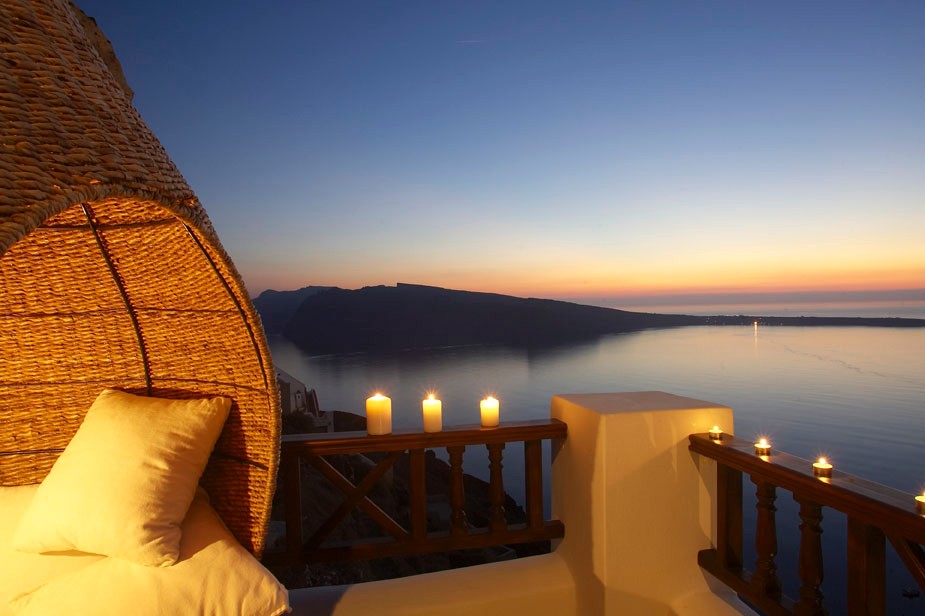 Two of the most captivating aspects of the unique Cyclades Island of Santorini are the one-of-a-kind Caldera View and the romantic Santorini Sunset View, both of which can be thoroughly enjoyed from the privacy of your Art Maisons Luxury Hotels in Oia.  Discover secluded balconies and comfortable lounge chairs. Experience the spectacular scenery on your very own Dream Island Vacation. These lovely intimate couples hotels are truly unique.  Relax as you luxuriate in your distinctive Honeymoon Suite and surrender yourselves to the magnificent natural vistas at your doorstep.