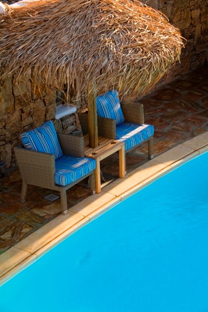 Arte & Mare Elia Suites is a luxury boutique hotel offering 15 distinct suites with an amazing combination of colors located at Elia Beach in Mykonos. It is a brand new establishment, first opened in 2008, and a creative collaboration of a Greek and an Italian leading architect. Its distinctive architecture is the result of an exceptional tying of the Mykonian architecture with stone washed white walls and the frugal Italian interiors with vibrant colors.