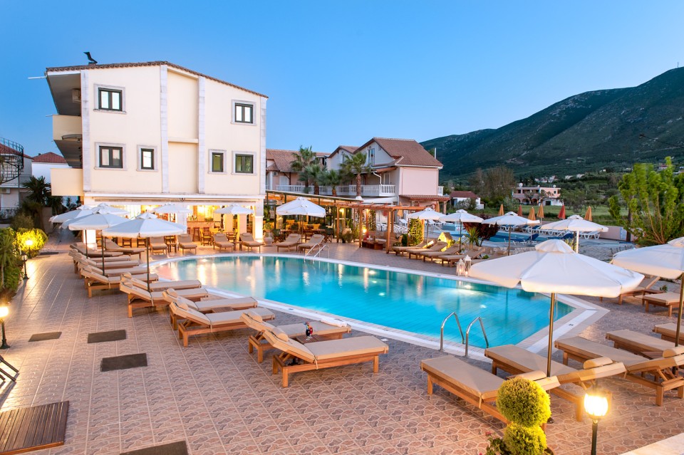 Welcome to the Clio Hotel on the picturesque island of Zakynthos, nestled amongst olive groves and surrounded by lush green scenery in a quiet area of the enchanting resort of Alykes.