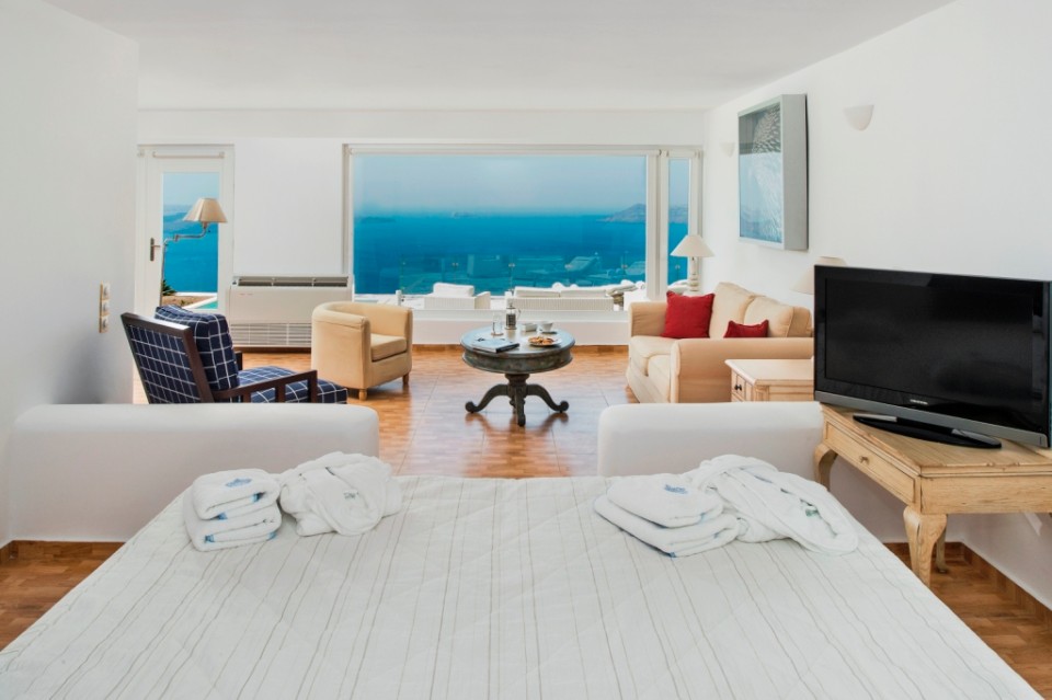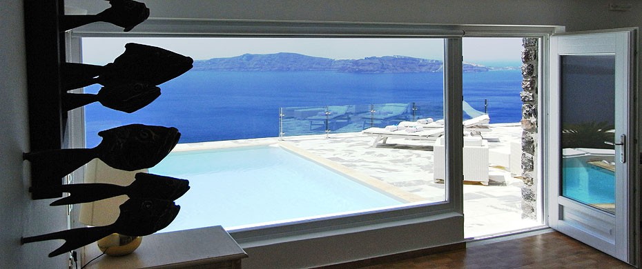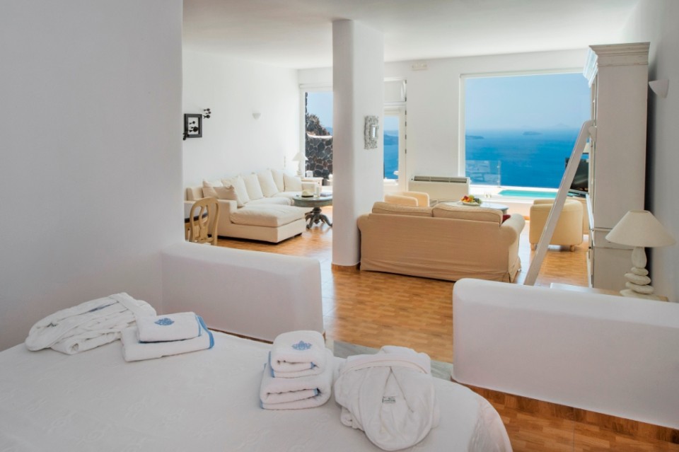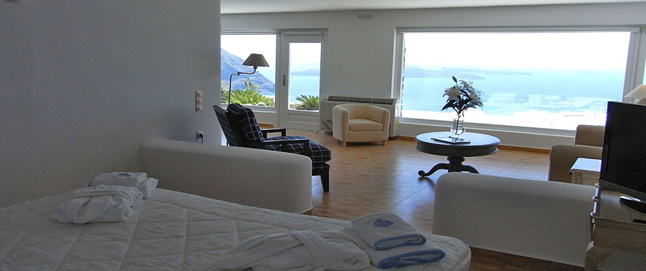 All Suites are very spacious (ranging from 85 to 130 sqm), built and decorated in elegant style with private verandas, outdoor comfortable lounges and endless views to the Caldera and the volcano.