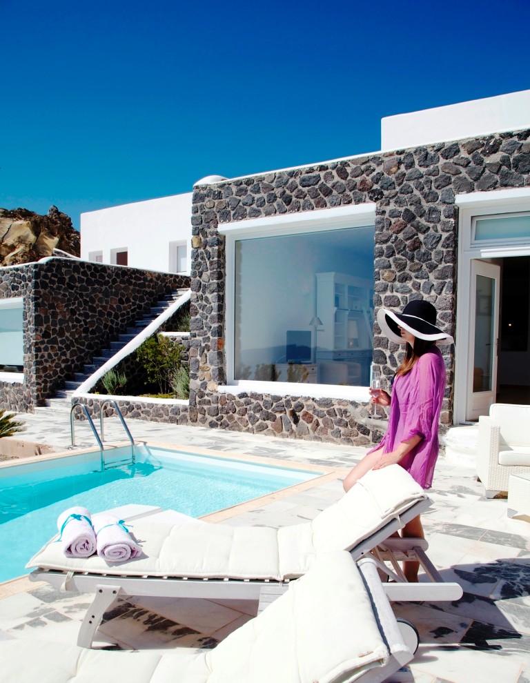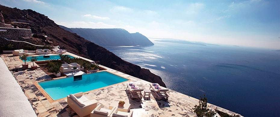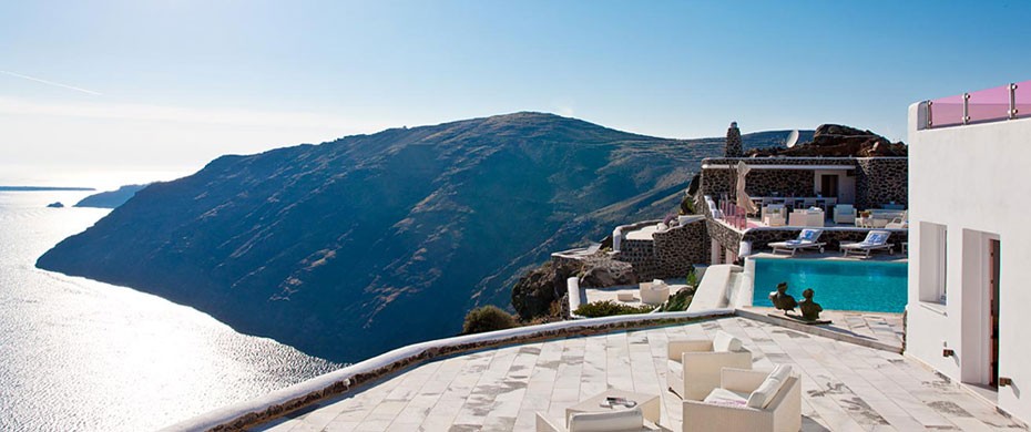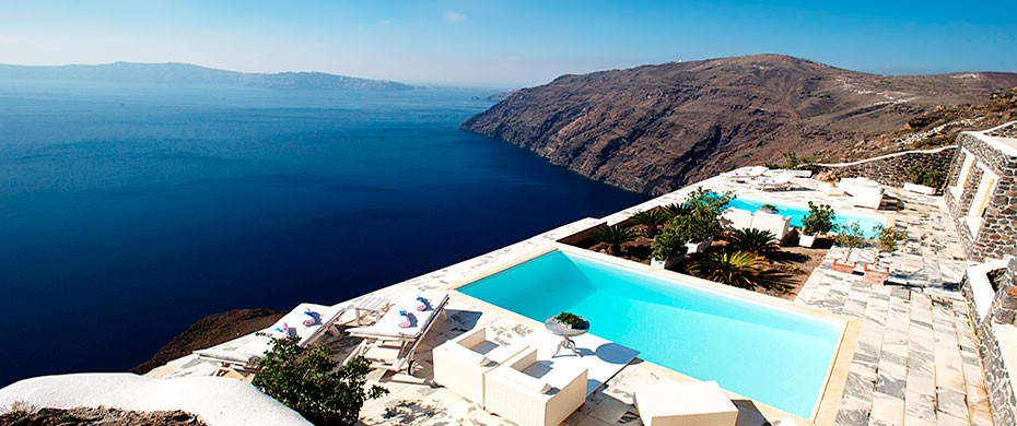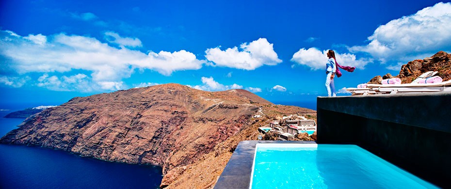 Located at the narrowest point of Santorini and with amazing panoramic views of both the volcano (caldera view) and the east coast, towards the Aegean Sea. A discreet and elegant destination for the guests who will appreciate the privacy offered along with the exclusive service.