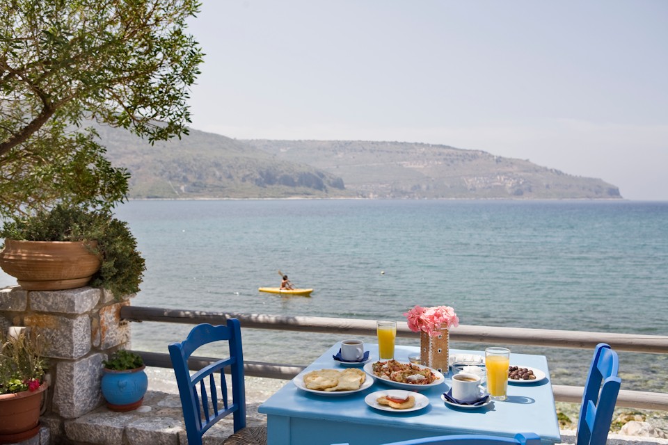 Just 10 meters from the crystal waters of the bay Itylos that enable visitors to enjoy the holidays along with the ceaseless song of the sea and the special sounds of shingles that come in contact with the crystal clear waters.