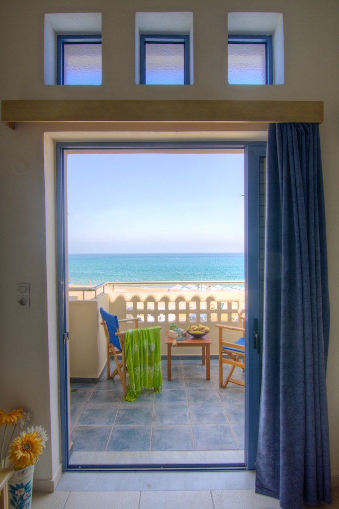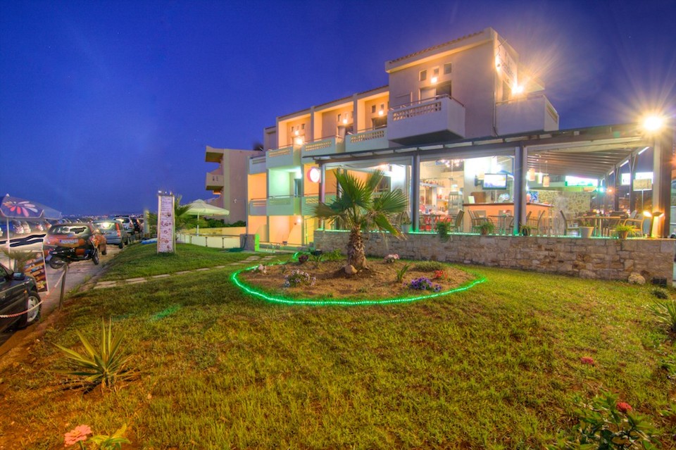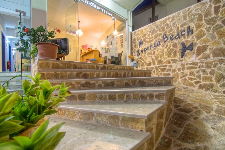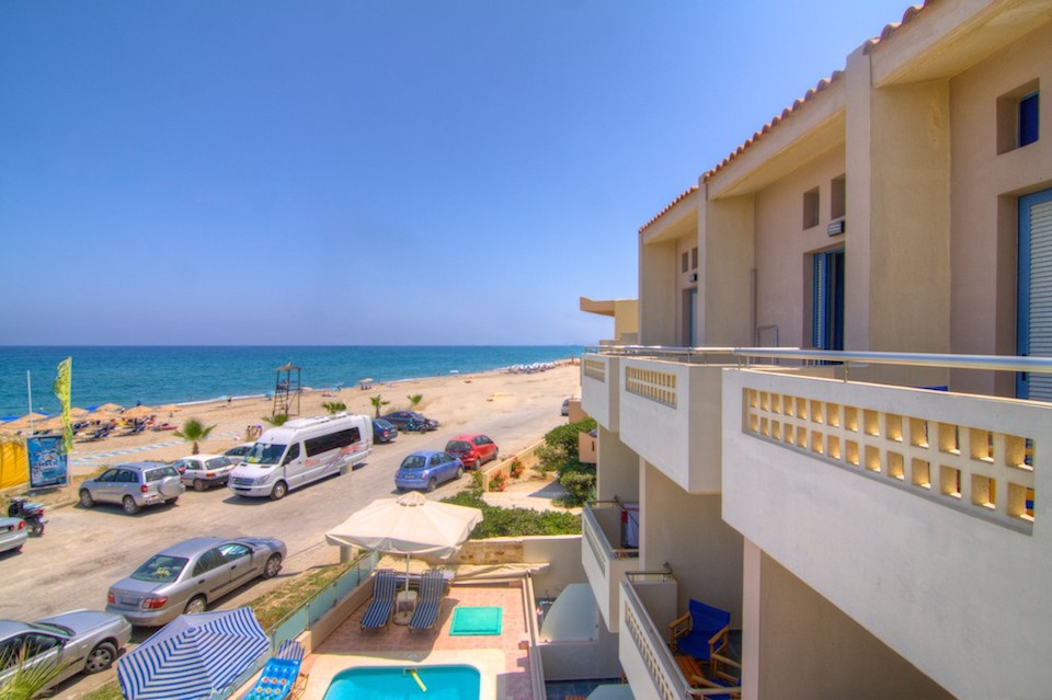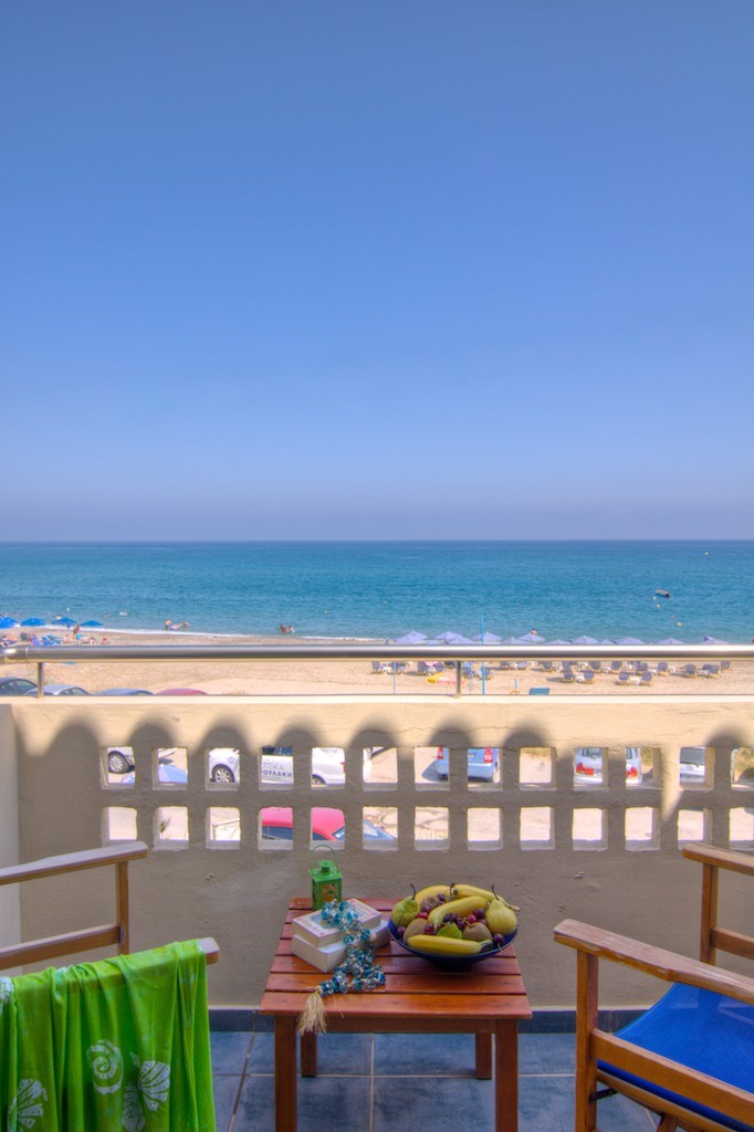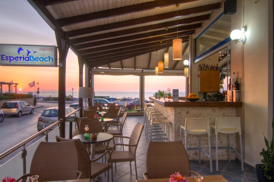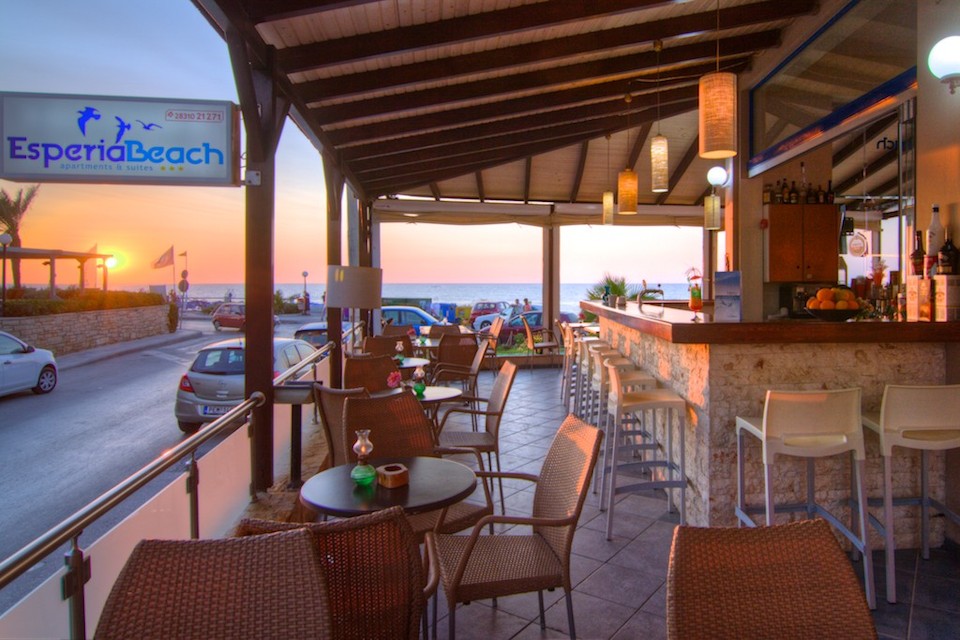 Esperia Beach Apartments & Suites is located right on the famous beach of Rethymno town on Crete, most of our apartments are sea view with big balconyes, private bath and showers and they all are full furnished with kitchen,a/c,flat tv, e.t.c. There is a mini market, reception, lift to all floors, Bar and Snack bar, Garden and a swimming pool. Our Beach front has a orginised service with sun beds and umbrellas and sea sports. Our property is ideal for those who like to walk, as it is only 30 minutes walk in to the center old town of Rethymno. Taxi rank is right outside from the hotel and bus stop is only around the corner.