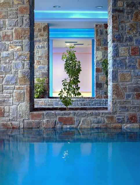 Refreshing and serene colours, contemporary decor highlights, sun filled rooms that feature gorgeous views. Villas are on traditional stone style with a size of 85sq.m and offer the luxury of an individual pool, terrace and garden, feature private entrance, spacious living room with 2 sofa beds and fireplace, 2 bedrooms with king size beds and 2 bathrooms can accommodate up to 6 adults.