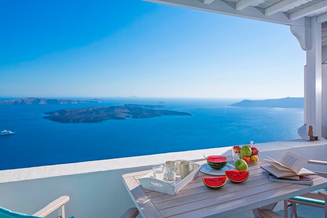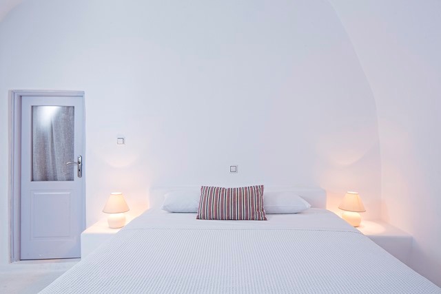 Enter the lower floor cave house - if you can take your eyes off the view that is! – which offers fresh white interiors with the continuous flow from living space to bedroom creating a quietly cool and friendly atmosphere.  This villa boasts a spacious double bedroom with a gorgeous en-suite bathroom with his and hers vanities.  Ideally a villa for two, there is additional sleeping room for extra guests on the banquette style couch, which is serviced by a second bathroom just off the lounge. For those who love to cook, the piece-de-resistance of this villa will most definitely be the kitchen – an uninterrupted Caldera view from your stove top. A private sun drenched terrace with soul-stirring views and outdoor Jacuzzi complete the picture.