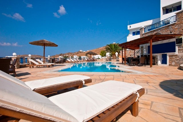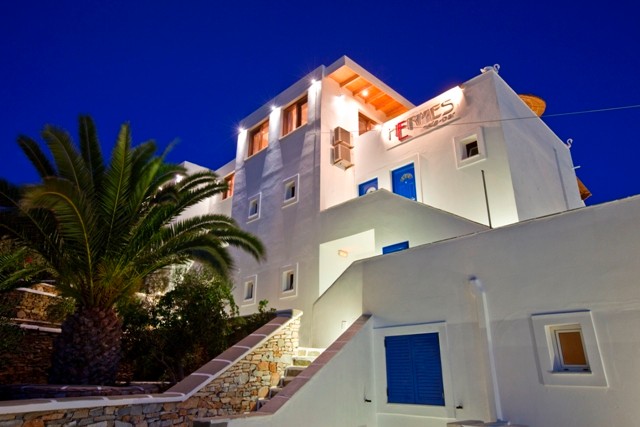 At Hermes Ios Hotel in Agios Ioannis of Ios you will be hosted in one of its 25 fully-equipped rooms for rent and you will relish excellent facilities, such as a quenching swimming pool with pool bar, and an elegant cafe-bar and roof garden for relaxing evenings with amazing sea views in the background. At this Ios hotel you will be pampered by expert staff while the management has paid particular attention to the services provided guaranteeing a pleasant stay and relaxing accommodation on Ios Island Greece.