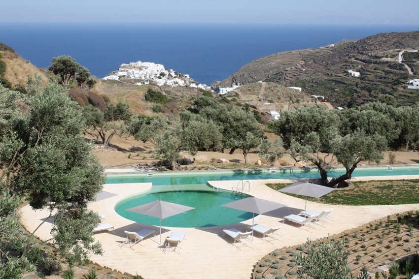 Kamarotí Suites Hotel is nestled on a natural olive grove overlooking the antique village of Kastro with the blue backdrop of the magnificent Aegean Sea.