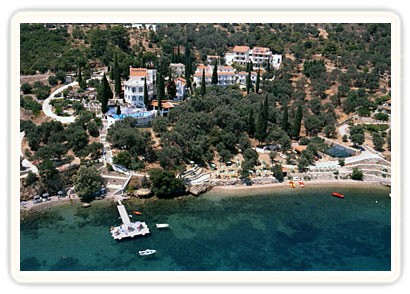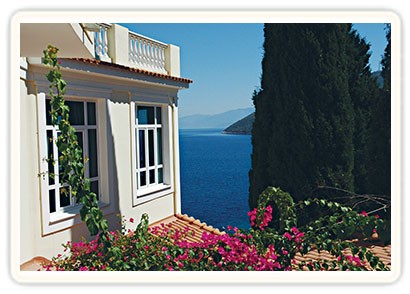It is built in a traditional island style - its 62 rooms spread out in six different “houses” located amongst cypress trees, olive groves and beautiful gardens, creating the atmosphere of a Greek seaside village, leading down to the clear turquoise waters of the Aegean Sea.