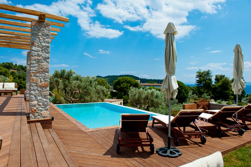 Welcome to our beautiful Skiathos island and our luxurious villas.The KING SIZE VILLAS are situated at Kolios area, which is only six kilometers away from the centre of Skiathos town and other six kilometers away from the most famous Koukounaries beach. Our complex consists of two villas : VILLA JASMINE and VILLA ALEXANDROS!They are both built in a green slope , full of olive trees, with an outstanding sea view over the Kolios bay.The peaceful nature and the infinity blue of the sea will offer you the most relaxing holidays. Our recently completed villas, with their private pools, provide all the comforts and luxury needed to make your visit unforgettable !!Each one can accommodate two to six persons with absolute freedom!Thanks to the perfect location, your access, whether to the city or any of the sixty beaches of the island , is very easy and quick. Skiathos is a paradise on earth and KING SIZE VILLAS are the ultimate experience!!!!