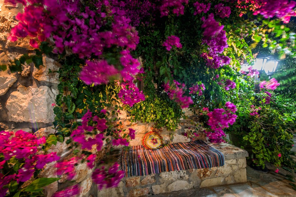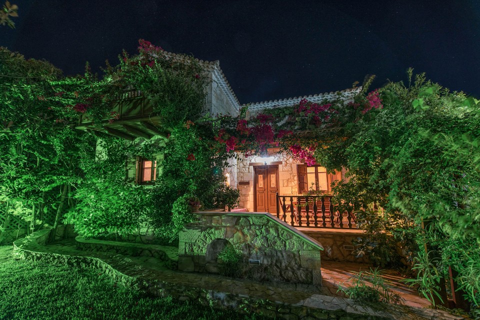 The construction began with the selections of stone from the mountainous villages of 'Kiliomenos' and 'Ag. Leon ' which was perfectly carved by local craftsmen who preserved the traditional architecture of the island. The combination of stone and wood in its natural condition is remarkable.