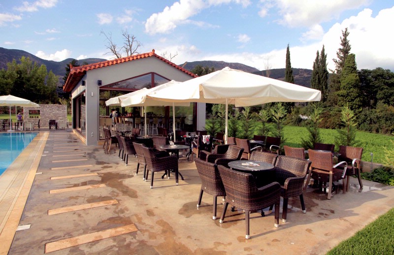 Mont Helmos is a traditional hotel,located in Klitoria,a village near Kalavrita. It has 30 spacious rooms and a suite with relaxing colours and panoramic view.It offers a friendly environment, rooms with television, autonomous heating and Room Service, car parking, bar, livingroom with fireplace where you can enjoy your coffee or drink, an outdoor swimming pool plus indoor heated swimming pool. The distance from the ski centre of Helmos is 18km., from the Cave of Lakes 9km, from the Rafting facilities of Ladonas River 15km and from the springs of Aroanios river 6km.