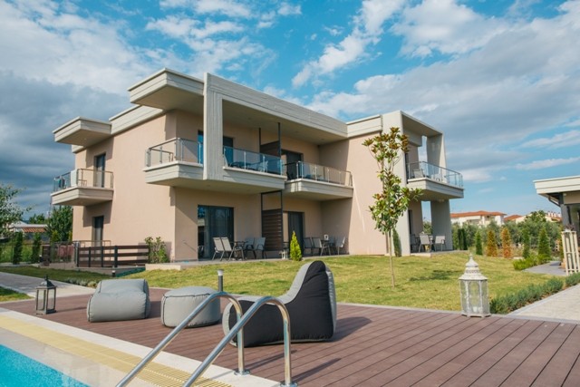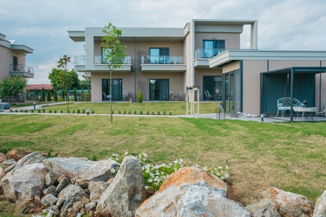 Olea Mare consists of two identical buildings constructed inside spacious gardens which encompass a swimming pool   as   well as a children’ s playground.