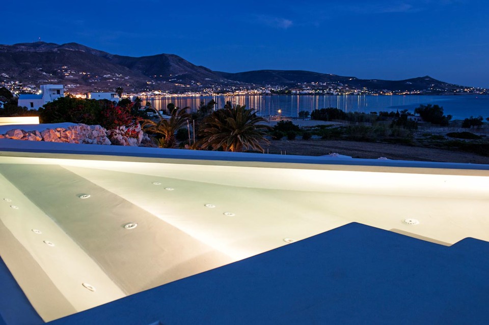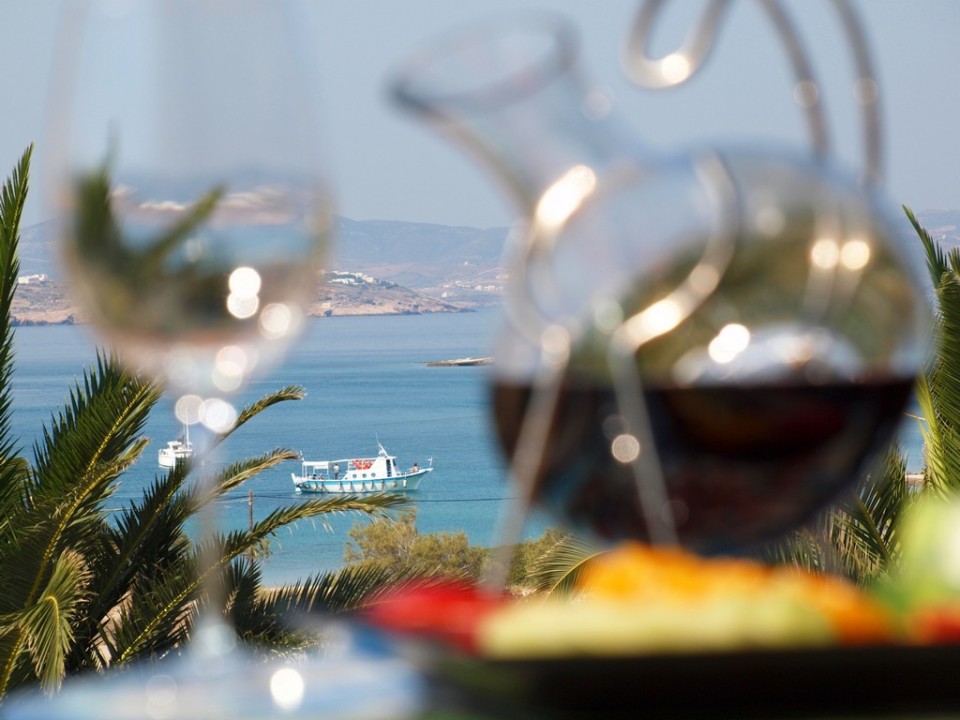 The hotel is 2.5km from the port-city of Parikia, which is easy to reach, either by using the free transfer our hotel provides three times a day at pre-arranged times or with the small water taxi that runs for most of the season from the port to a pier near the hotel and back every twenty minutes from 10:00 am to 07:00 pm. Regular taxis are of course available and can be booked in advance or called by the reception. The airport is 10km away and can also be reached with a taxi. Also available are transfers to and from the port or airport with the hotel mini bus for a fee.