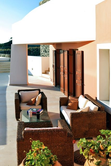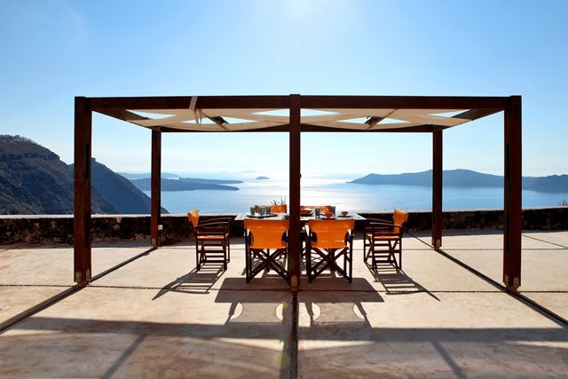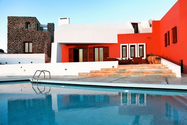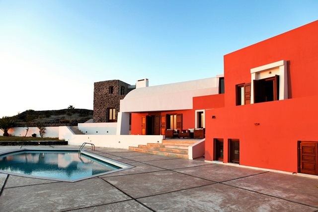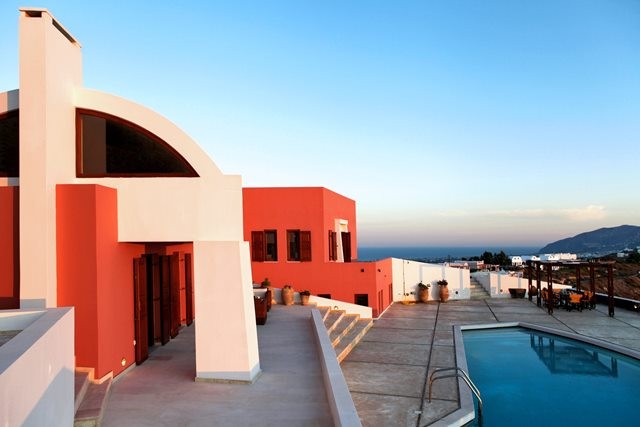 This wonderful villa is the home of a renowned Greek architect who lives on the island and its distinctive design combines Santorinian traditional vaulted ceilings combined with futuristic lines and forms.