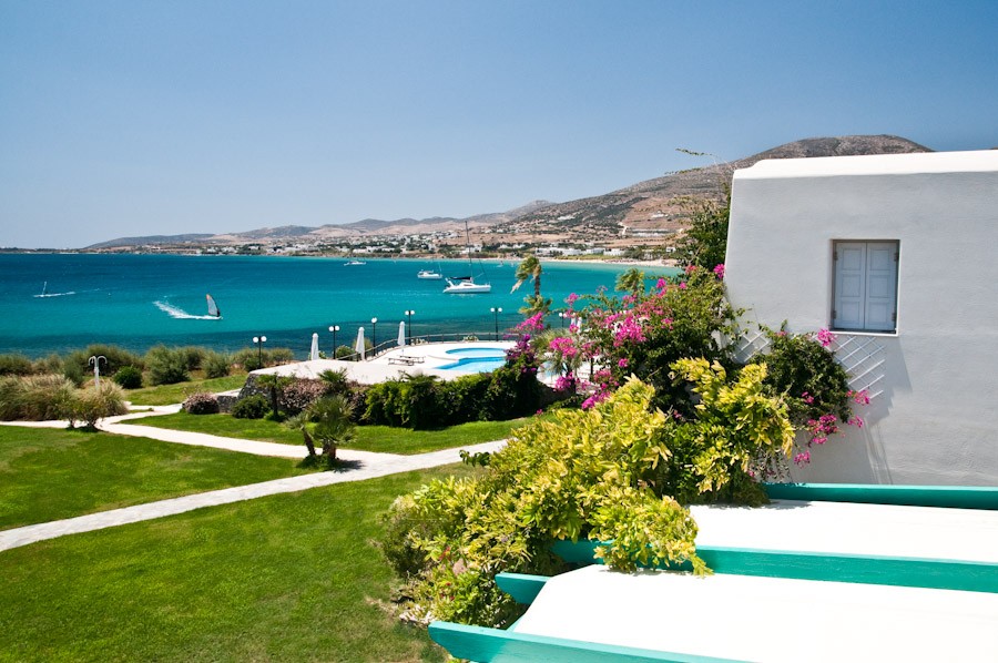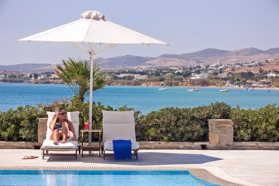 At cape “Choni” next to Golden Beach, where the deep blue of the Aegean Sea blends with the light blue of the Cycladic sky, lies in 22.000 sq. meters the 4 star Hotel – Apartment Complex “Poseidon of Paros”.