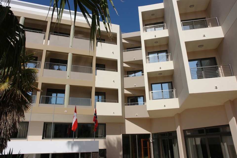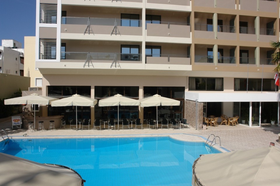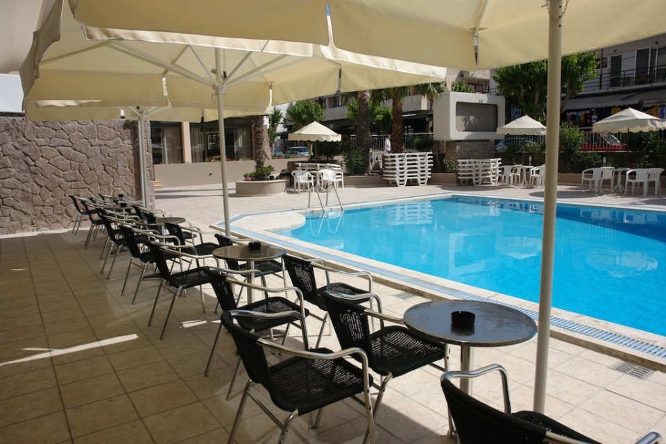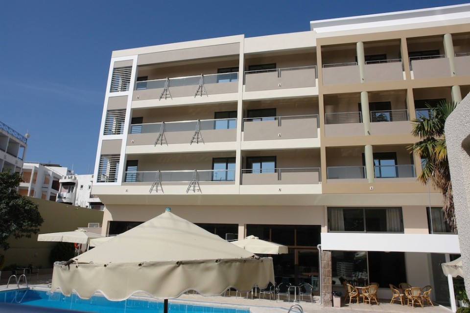 Saint Constantin Hotel is a 3*** star Kos Town hotel of 104 rooms in the city of Kos, Kos Island, Greece. It was recently fully renovated and it offers modern furnitured and decorated singles, doubles, studios and apartments/family rooms. It is located in the heart of Kos town and only 100 m. from a beautiful sandy beach. Every room has beautiful furniture and large beds, bath or shower, air conditioning, sattelite T.V., refridgerator, telephone, hair-dryer, in-room music and large balcony. In the studios and apartments (except the above) there are fully equipped kitchenettes with a table and chairs and there is also an extra bed or a bed-sofa.