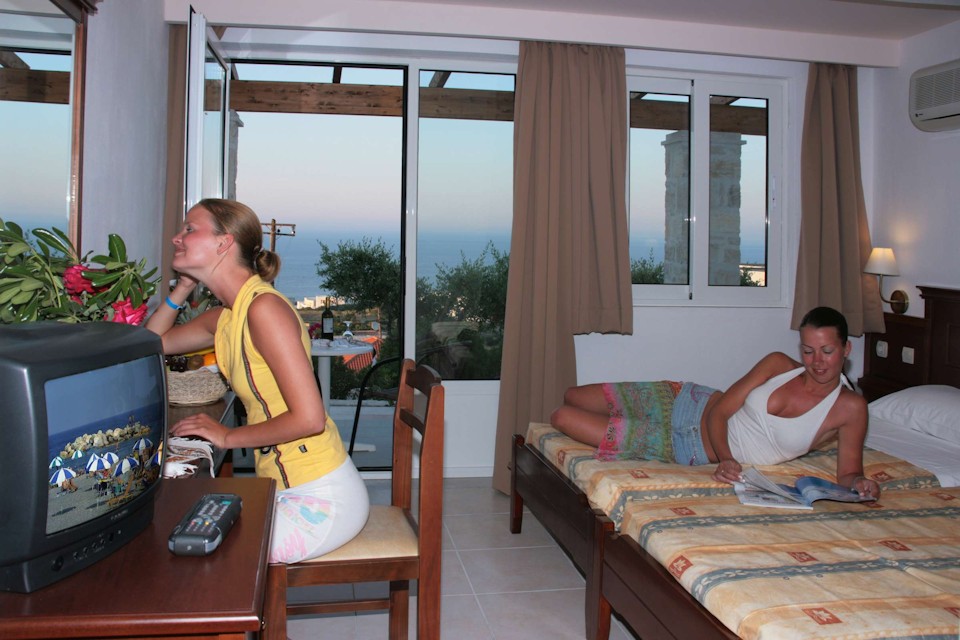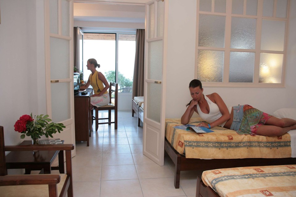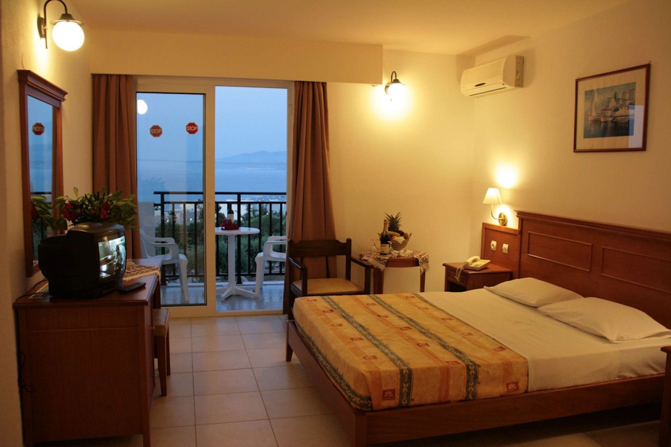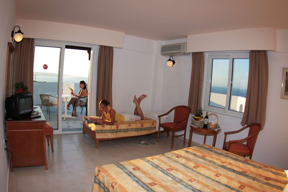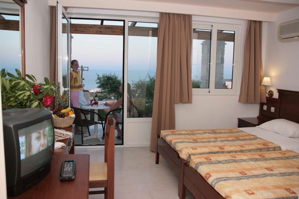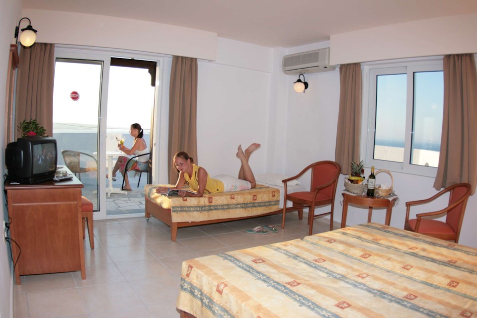 Rooms are elegant, comfortable and clean, and guests are served a welcome breakfast buffet in the hotel restaurant each day. Lunch and Dinner are traditional Greek and Mediterranean fare, and refreshing drinks are also available for the bar to keep you comfortable on chill-out days spent pool side.