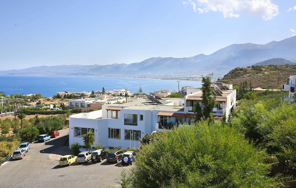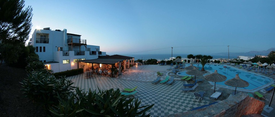 If you're looking for a lovely holiday, Semiramis Village could be just the hotel for you. Located in an elevated position with spectacular panoramic views over the sea and the mountains, the hotel offers a great value base from which to explore all that this section of the Cretan coast has to offer. This includes amazing scenery and some of the most exciting resorts on the Island. Though within a short walking distances, buses from the stop just 200 meters from the hotel will whisk you in no time into the center of the cosmopolitan town of Hersonissos with its wide choice of shops, bars and buzzing nightspots and a little further along the coast, is the well-known party mecca of Malia. Within easy reach of the hotel are a number of pretty sand and shale beaches where a wide variety of water sports are on offer.