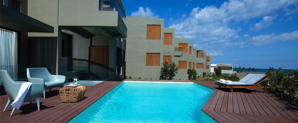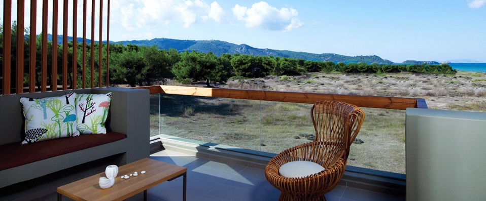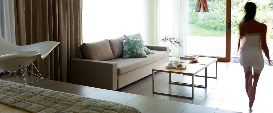 Thalatta Seaside Hotel member of the Small Luxury Hotels of the World blessed with the pristine beachfront of the blue Aegean Sea of Agia Anna Beach and surrounded by a green pine forest offers tranquility and rejuvenation holidays. An ideal retreat for families and couples! The unique location of Thalatta Seaside coupled with the hotels great architecture of contemporary design offer to the demanding modern traveller a heaveanly getaway .