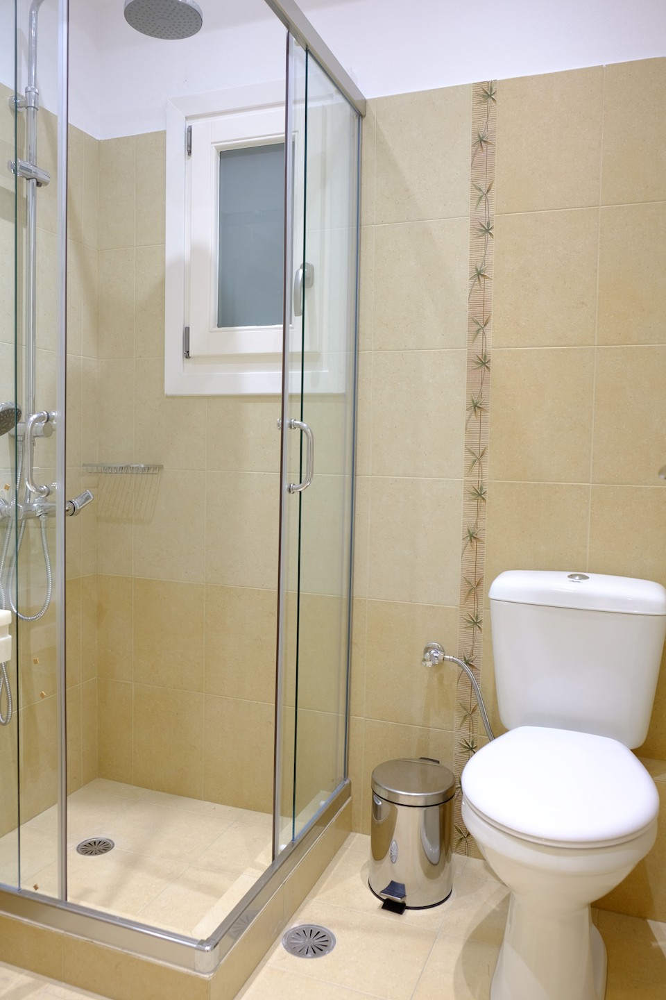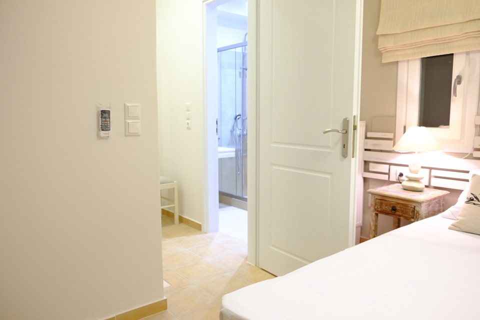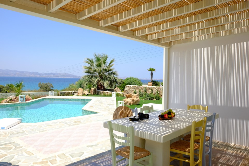 It is situated on a slope with amazing views to the sea and the neighboring island of Paros. It is only 150 meters from the beach.