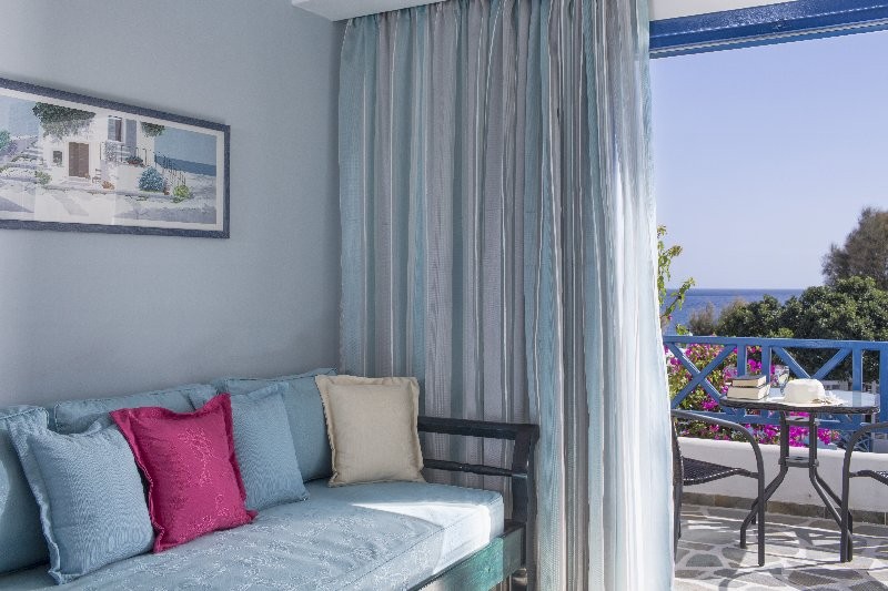 The Veggera Hotel in Perissa, Santorini offers elegant accommodation in all of its hotel rooms, maisonettes, apartments and suites. The management has designed the hotel so as to provide guests with excellent facilities, such as a restaurant, 2 swimming pools, a children’s pool, a sauna and a Jacuzzi, and first-class services. At Veggera Hotel in Santorini, your holiday on Santorini Island becomes a dream come true.