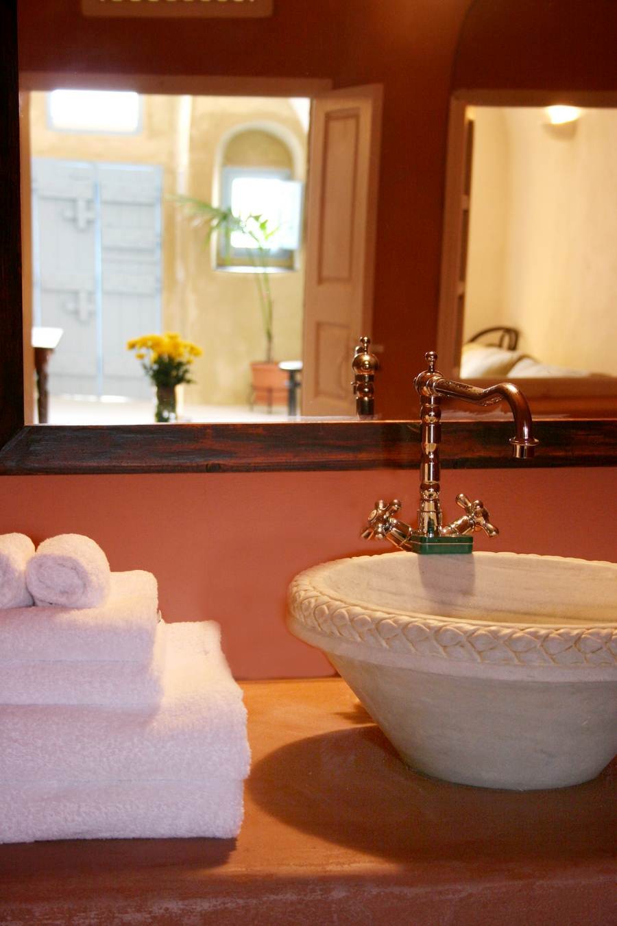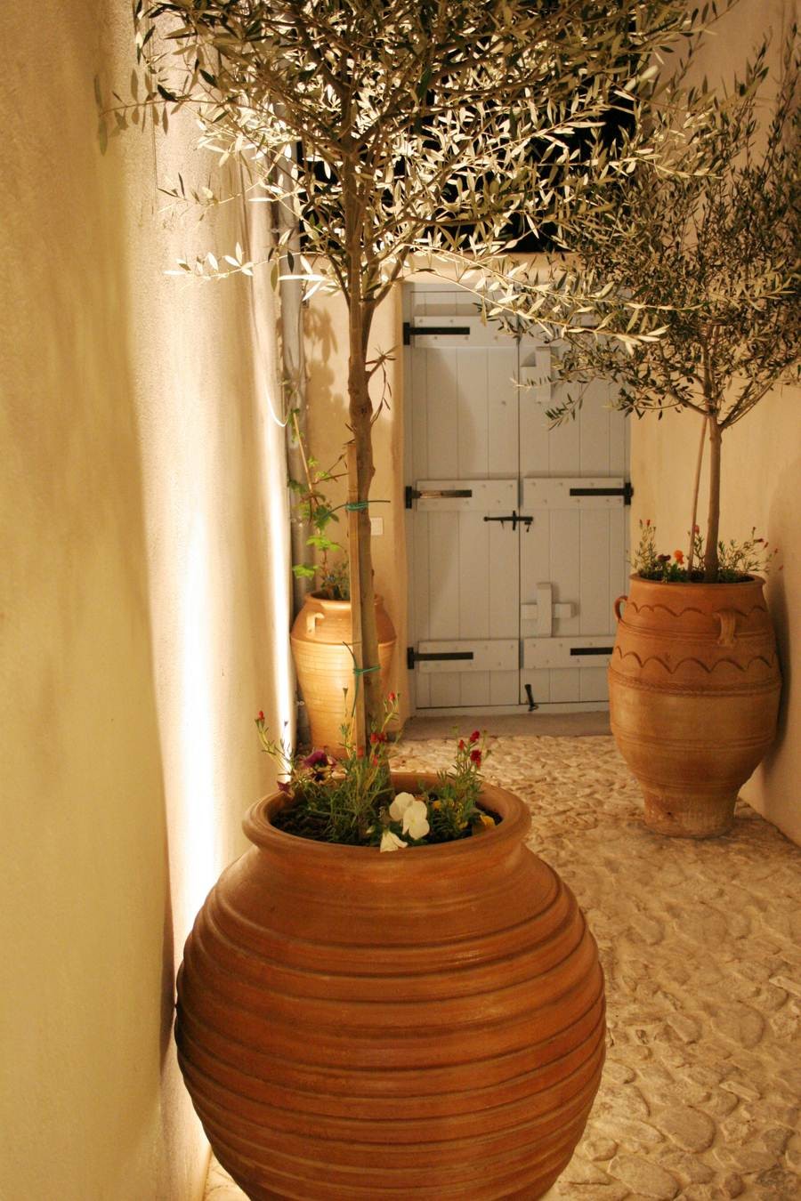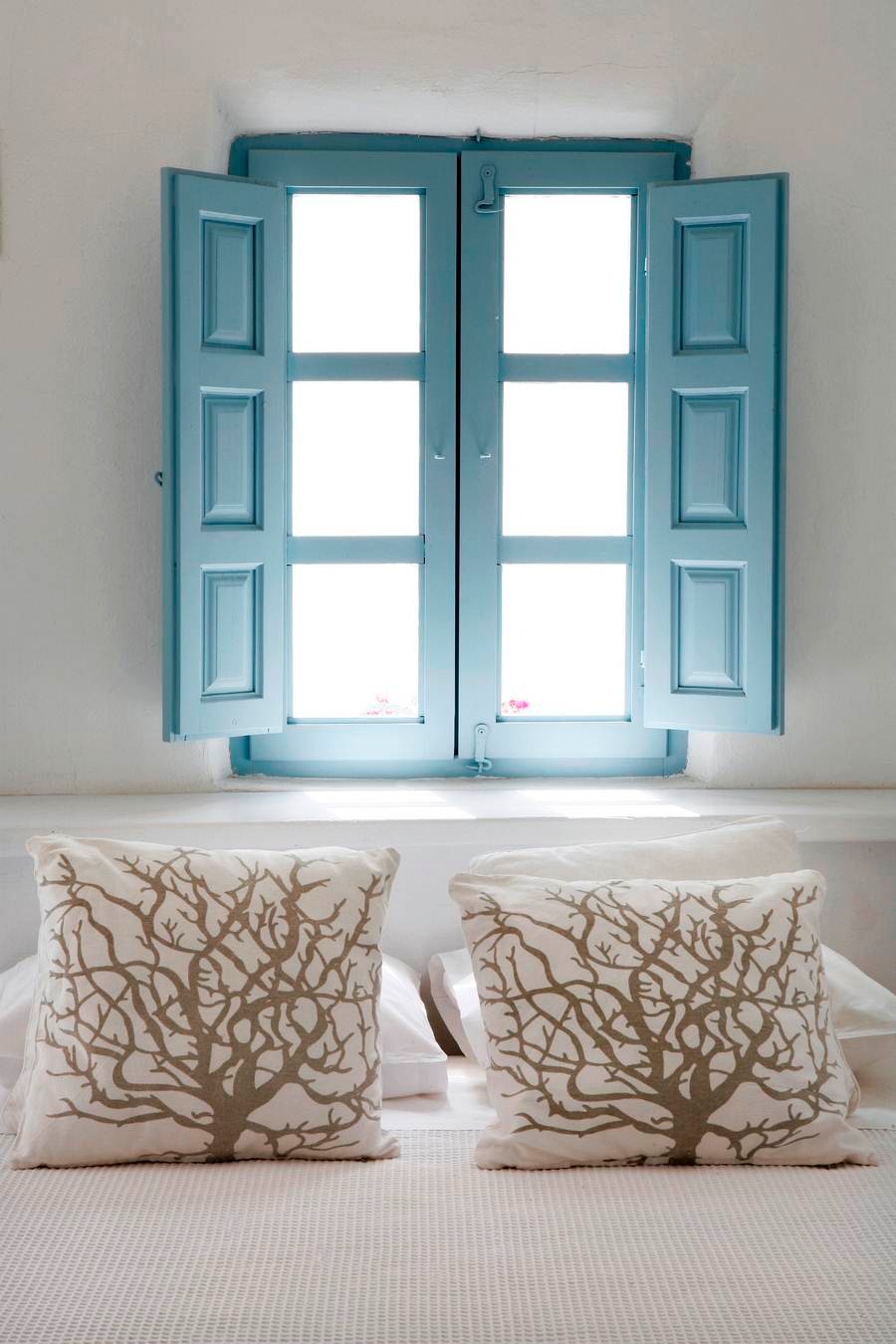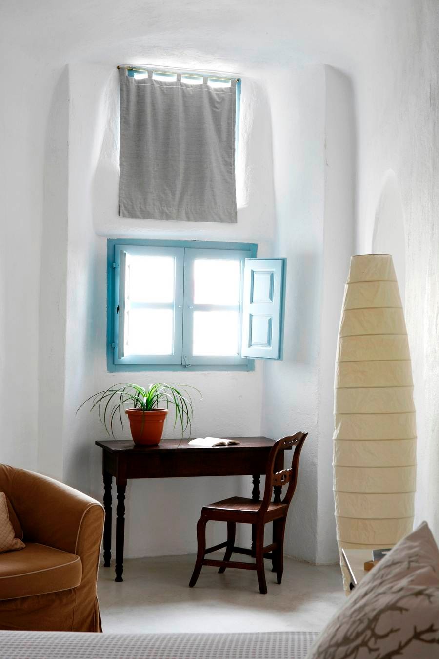 The cool, vaulted interiors throughout the villa give a feeling of relaxation and accentuate the earthy energy of the island. The Santorini - Theraic earth has insulating qualities and has proven to be an early example of bioclimatic architecture, keeping rock-hewn houses cool in the summer and warm in the winter.