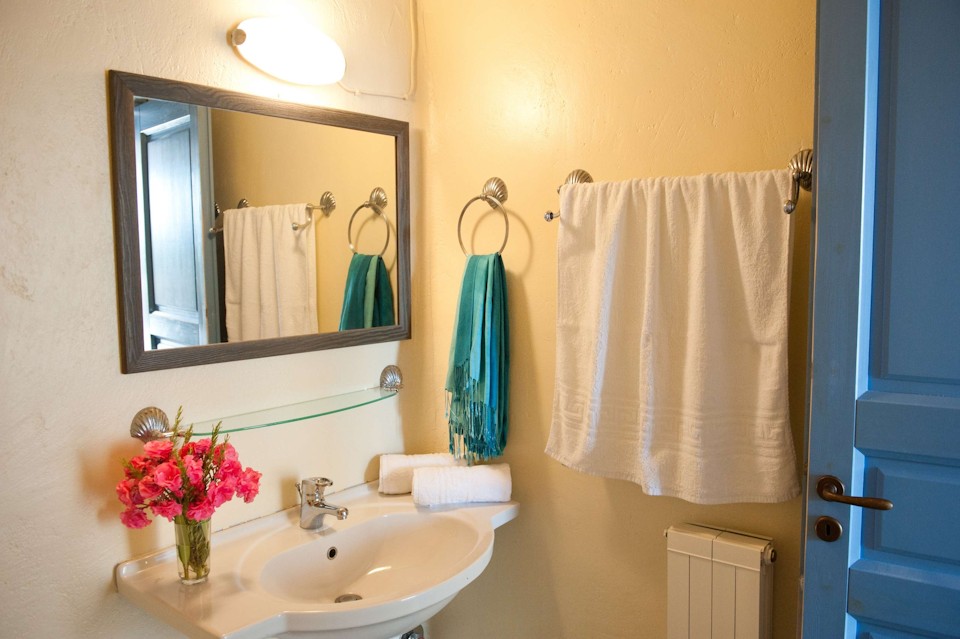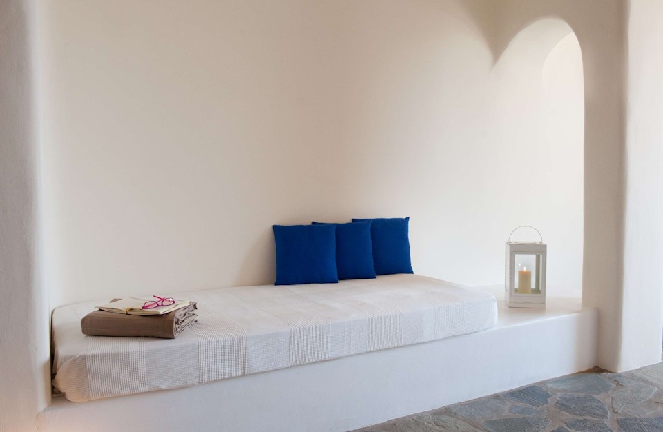 For groups with more than eight guests there is available the Guest House, at extra cost. It is located at the lower level of the villa and can host up to three guests with its own separate entrance, a stone-build double bed, a sitting room with stone-build bed, kitchen and bathroom.