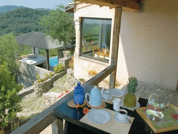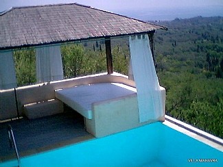 The villa is located inthe borders of an old venetian village which is 17km from corfu town and it's airport. By just standing at the veranda you can spot the beautiful landscape and the sea which is only 1.5km away. Manavra is in the northeast of corfu, which happens to be the most beautiful part of the whole island. Alongside the coast you can find breathtaking beaches which offer you great nightlife and boat rental. The positioning of the villa is ideal not only because of the beach nearby but also because it is located between town and countryside which enables great sightseeing. The health care centre is only 2.4km away. There are only 200 meters separating the house from an old byzantine church with beautiful fresco's. The house and its surroundings create a big deal of outdoor activities including hiking, walking and mountain biking. The beach nearby offers water sports of all kind, even paragliding. Finally the house has a gorgeous view to the northeast.